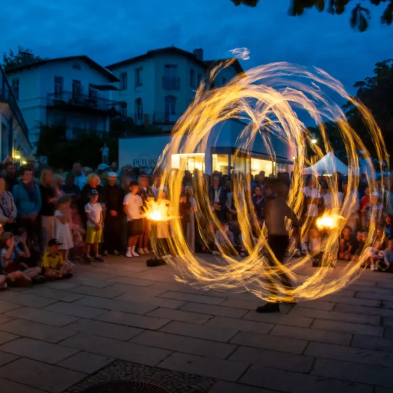 Mit ruhiger Präsenz und flammender Präzision bringt der Feuerkünstler von Rügen Licht in die Dunkelheit.